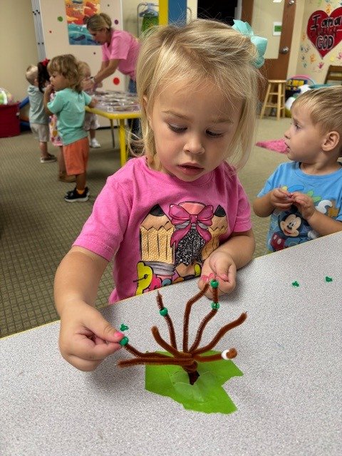 Our day begins at 8:50 a.m. and ends at noon! If you take advantage of our Lunch Bunch program, the day is extended until 1 p.m. The day begins with centers (Home Living, blocks, cars, reading, science & free art) and exploration time where creativity flourishes! Following centers is circle time where we learn about our numbers, letters, colors, etc.. Your child’s teacher directs arts and crafts, snack time, outside time, and enhancements! Some examples of our enhancements are Spanish, Music and Chapel! Bible lessons are also taught everyday as part of the ABC Jesus Loves Me curriculum. The fours have additional teaching time where they focus on numbers and phonics. Each week we focus on a different theme! Some examples are All About Me, Farm week, Fall, Career Week” etc. Each different theme will correlate with the lessons, crafts and activities! Along with learning, we like to plan different special events throughout the school year! Some examples are Special Centers, Dances, Muffins with Mom, Donuts with Dad, Father/Daughter dance, Mother/Son Prom and more!